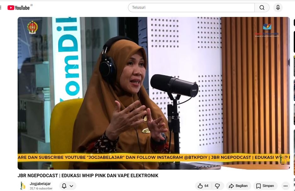 Podcast ini disiarkan secara langsung melalui kanal YouTube Jogja Belajar mulai pukul 10.00 WIB dan berlangsung secara interaktif. Dipandu oleh Septandho Hishaf, suasana diskusi terasa santai namun tetap sarat informasi. Topik yang diangkat dinilai актуal, mengingat penggunaan vape dan munculnya zat baru seperti “whip pink” mulai banyak ditemukan di kalangan remaja.