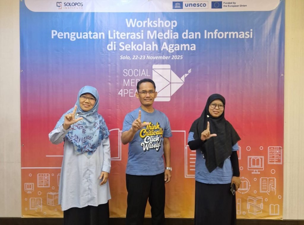 Bantul (MAN 2 Bantul) – MAN 2 Bantul kembali menunjukkan kontribusinya dalam penguatan kualitas pendidikan melalui keikutsertaan guru Kimia, Puji Lestari, dalam Workshop Penguatan Literasi Media dan Informasi (LMI) yang diselenggarakan oleh Solopos Institute bekerja sama dengan UNESCO. Kegiatan yang merupakan bagian dari program internasional Social Media 4 Peace ini berlangsung pada SabtuāMinggu, 22ā23 November 2025 di Hotel Megaland Solo, dan dihadiri oleh 37 peserta yang terdiri atas guru, kepala madrasah, serta perwakilan Kementerian Agama dari berbagai daerah di Indonesia. Dari Daerah Istimewa Yogyakarta (DIY), hadir tiga delegasi lembaga pendidikan Islam yaitu Edi Triyanto (Kepala MAN 1 Yogyakarta), Siska Yuniati (MTsN 1 Yogyakarta), dan Puji Lestari (MAN 2 Bantul).