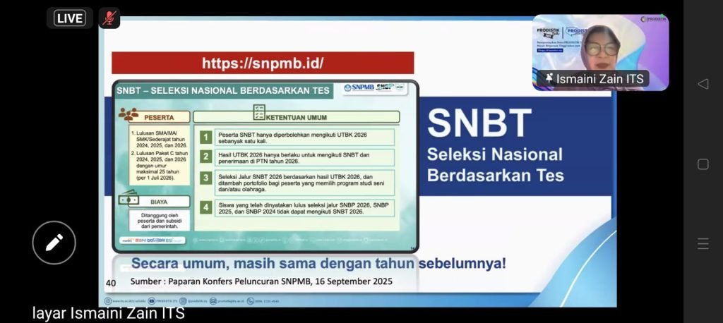Tema utama kegiatan ini adalah mempersiapkan siswa PRODISTIK agar lebih siap menghadapi seleksi masuk perguruan tinggi negeri, khususnya jalur Seleksi Nasional Berdasarkan Prestasi (SNBP) 2026. Dalam paparannya, Ismaini Zain menekankan pentingnya memahami Tes Kemampuan Akademik (TKA) yang mulai diberlakukan sebagai salah satu instrumen pendukung seleksi mahasiswa baru.