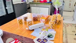 Promosi open order dilakukan melalui media sosial, grup WhatsApp, serta informasi yang disampaikan kepada warga madrasah dan masyarakat sekitar. Kue-kue yang telah diproduksi kemudian dikemas dalam toples dan diberi label “Dapur Manoro” sebagai identitas produk hasil karya siswa.