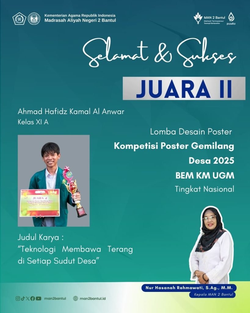 MAN 2 Bantul Ukir Prestasi Nasional: Ahmad Hafidz Raih Juara 2 Kompetisi Poster Gemilang Desa 2025 UGM Berita, Prestasi / Tinggalkan Komentar