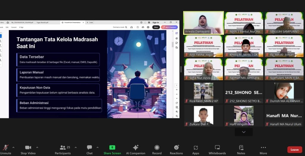 Bantul (MAN 2 Bantul) — Kepala MAN 2 Bantul, Nur Hasanah Rahmawati, mengikuti kegiatan Kelompok Kerja Kepala Madrasah (K2MA) DIY 2025 yang diselenggarakan secara daring melalui Zoom Meeting pada Sabtu (27/12/2025). Kegiatan ini merupakan bagian dari program peningkatan kapasitas pimpinan madrasah dalam penguatan tata kelola berbasis teknologi dan data.