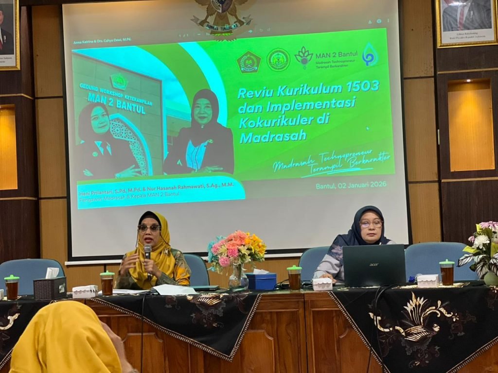 Bantul (MAN 2 Bantul) — MAN 2 Bantul menggelar kegiatan Reviu Kurikulum 1503 dan Implementasi Kokurikuler di Madrasah pada Jumat (2/1/2026) di Aula Madrasah. Kegiatan ini diikuti oleh seluruh guru dan tenaga kependidikan sebagai upaya penyamaan persepsi terhadap kebijakan kurikulum terbaru di lingkungan madrasah.