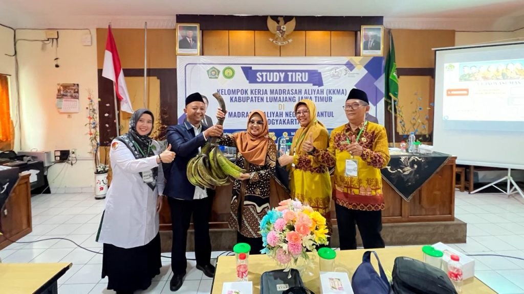 Bantul (MAN 2 Bantul) – Suasana penuh kehangatan menutup rangkaian studi banding KKMA Kabupaten Lumajang di MAN 2 Bantul pada Rabu (3/12/2025). Selain pertukaran cenderamata resmi, rombongan Lumajang juga membawa oleh-oleh khas daerah mereka, yaitu Pisang Agung, salah satu komoditas kebanggaan Lumajang yang terkenal berukuran besar, manis, dan memiliki tekstur lembut.