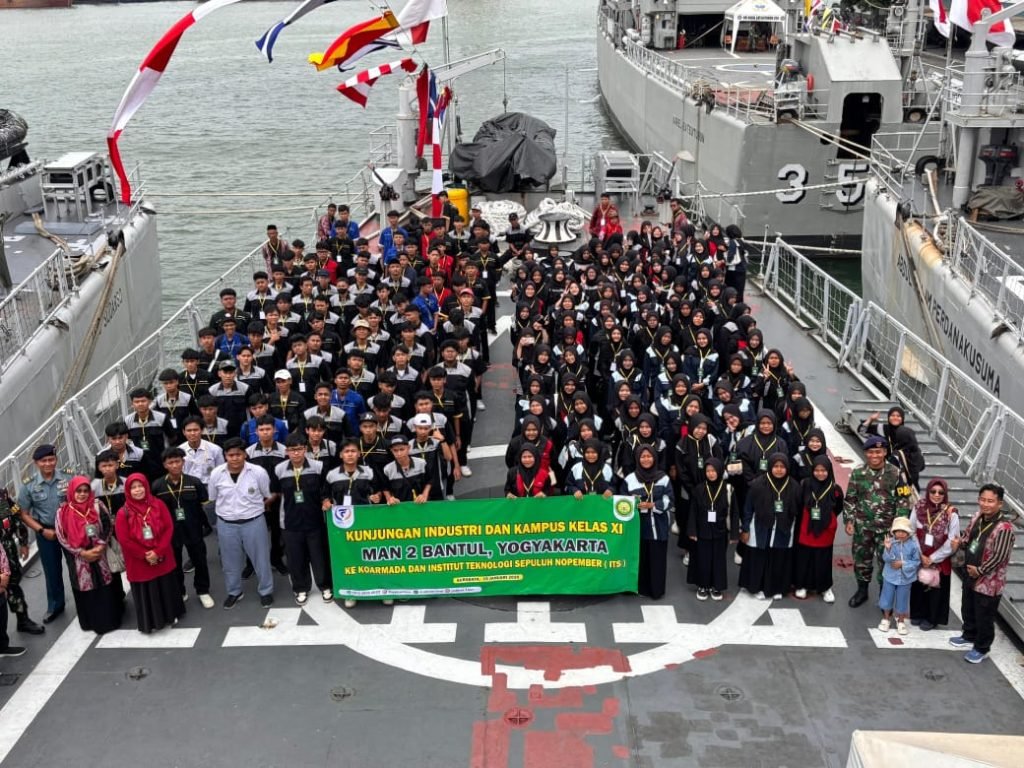 Surabaya (MAN 2 Bantul) — MAN 2 Bantul melaksanakan kegiatan kunjungan industri ke Markas Komando Armada II (Koarmada II) Surabaya pada Kamis (15/1/26). Kegiatan ini menjadi bagian dari pembelajaran luar kelas yang bertujuan memperkenalkan dunia kerja, menambah wawasan kebangsaan, serta menanamkan nilai disiplin, tanggung jawab, dan keberanian kepada peserta didik.