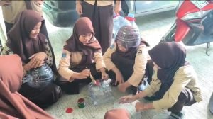 Kegiatan diawali dengan pengarahan teknis mengenai cara pembuatan pot hidroponik. Para siswa kemudian memotong galon pada bagian ruas hingga terbagi menjadi dua. Bagian atas dilubangi kecil-kecil sebagai jalur penyerapan air, lalu dipasang kembali tutupnya agar bentuk tetap kokoh. Proses selanjutnya menjadi sesi paling seru, yaitu menghias pot galon dengan cat warna-warni sehingga tampil lebih menarik dan layak dekoratif.