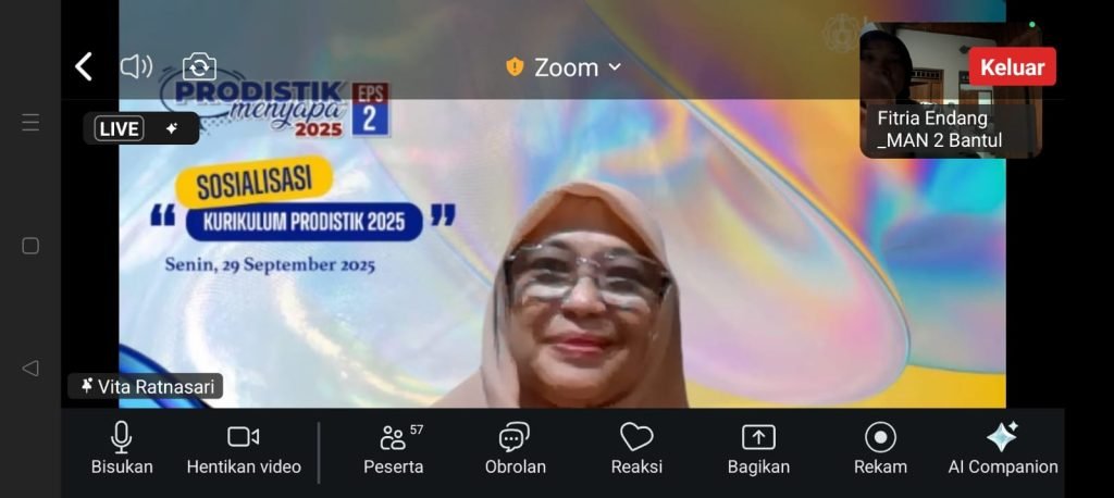 Bantul (MAN 2 Bantul) – Madrasah Aliyah Negeri (MAN) 2 Bantul kembali menunjukkan komitmennya dalam mengembangkan pembelajaran berbasis teknologi dengan mengikuti kegiatan “Sosialisasi Kurikulum Prodistik 2025”. Kegiatan ini dilaksanakan pada Senin (29/9/25) melalui Zoom Meeting, mulai pukul 15.15 hingga 17.15 WIB.