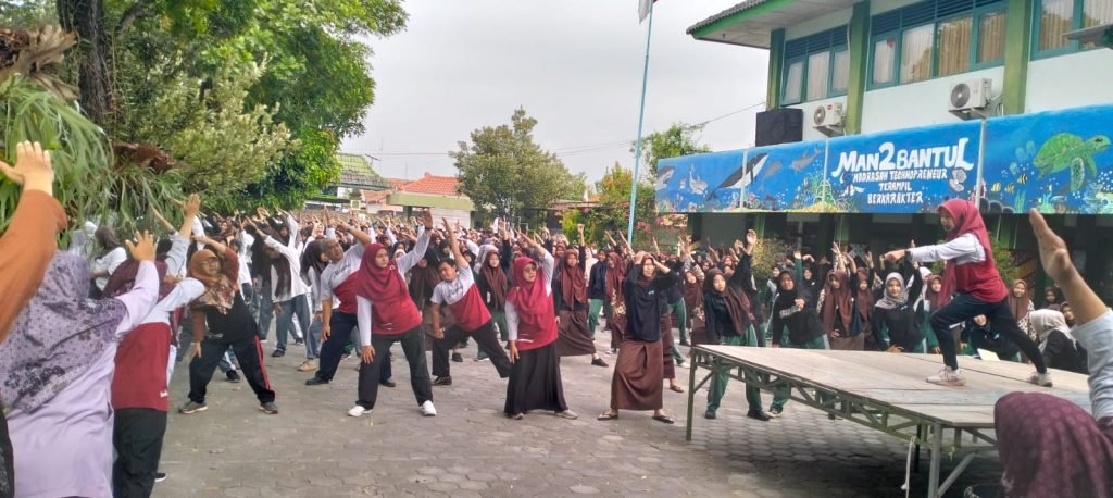 Bantul (MAN 2 Bantul) – Madrasah Aliyah Negeri (MAN) 2 Bantul kembali melaksanakan kegiatan Jumat Bertasbih dengan agenda senam pagi bersama pada Jumat (3/10/2025). Kegiatan yang digelar di halaman madrasah ini diikuti oleh seluruh siswa, tenaga pendidik, dan tenaga kependidikan dengan penuh semangat.