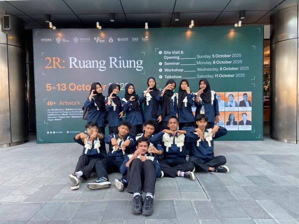 Bantul (MAN 2 Bantul) — Siswa MAN 2 Bantul yang tergabung dalam organisasi Mandaba Creative melakukan kunjungan edukatif ke pameran seni bertajuk “Ruang Riung” di Universitas Nahdlatul Ulama (UNU) Yogyakarta pada Rabu (9/10/25). Kegiatan ini menjadi bagian dari penguatan karya kreatif siswa sekaligus memperkokoh pemahaman moderasi beragama melalui seni dan dialog lintas iman. Mereka didampingi guru multimedia, Adinda Nora Krisna dan Menara Lintang Was.