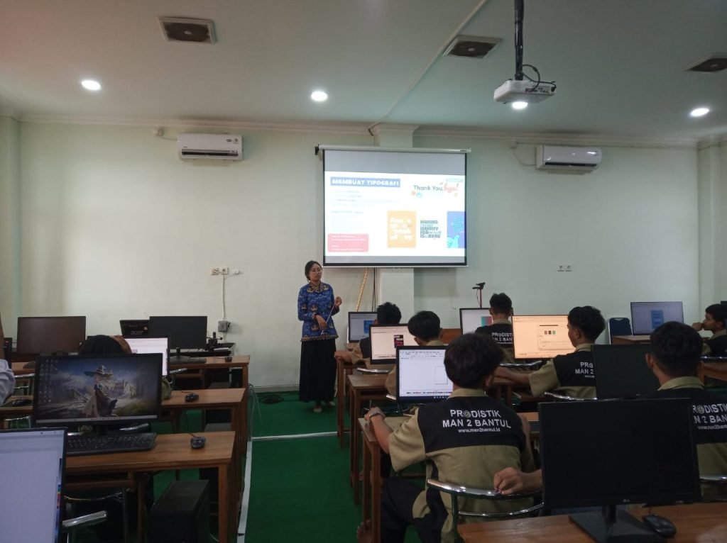 Bantul (MAN 2 Bantul) – Laboratorium Multimedia 1 MAN 2 Bantul pada hari Senin (10/11/2025) menjadi saksi bisu semangat dan konsentrasi tinggi dari siswa-siswi kelas X A. Mereka tengah mengikuti sesi pembelajaran krusial dalam dunia desain visual, yakni materi Tipografi (Typography). Dibimbing langsung oleh guru mata pelajaran Multimedia yang berdedikasi, Adinda Nora K. F., para siswa tidak hanya disuguhi teori, namun juga dipersiapkan untuk menghadapi tugas praktik yang menantang kreativitas dan kepekaan estetika mereka.