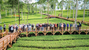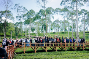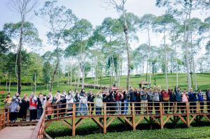 Udara sejuk dan hamparan hijau perkebunan teh menyambut rombongan setibanya di lokasi. Para guru dan tenaga kependidikan tampak menikmati suasana alam yang menenangkan sambil menyusuri jalan setapak di antara tanaman teh yang tertata rapi di lereng perbukitan.