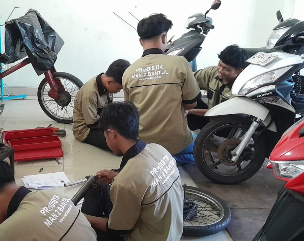 Bantul (MAN 2 Bantul) — Pembelajaran berbasis unjuk kinerja diterapkan pada siswa kelas X keterampilan otomotif di MAN 2 Bantul, khususnya pada materi sistem sasis dengan sub kompetensi sistem suspensi sepeda motor. Kegiatan ini bertujuan untuk mengasah keterampilan praktik siswa sekaligus mengukur kemampuan mereka dalam memahami materi secara langsung di lapangan pada Senin (13/4/2026).