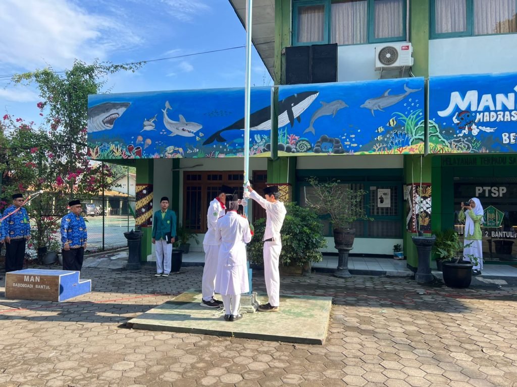 Bantul (MAN 2 Bantul) – Madrasah Aliyah Negeri (MAN) 2 Bantul menyelenggarakan upacara peringatan Hari Kesaktian Pancasila pada Rabu (1/10/2025). Upacara yang digelar di halaman madrasah ini berlangsung khidmat dengan diikuti seluruh siswa kelas X dan XI, para guru, staf madrasah, kepala MA, MTs, MI, pengawas, serta peserta Program Induksi Guru Pemula Madrasah (PIGPM).