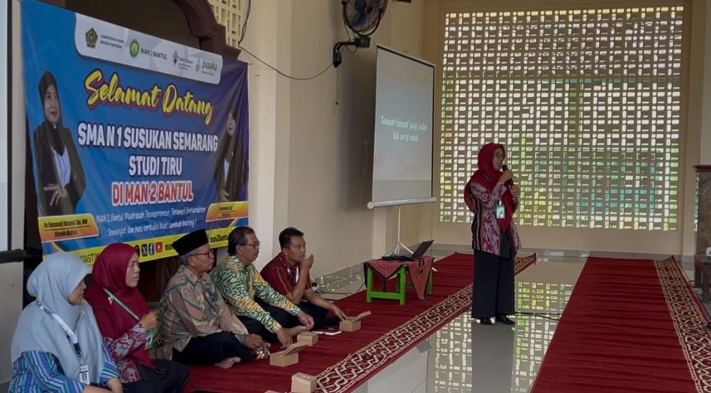 Dalam sambutannya, beliau menyampaikan ucapan selamat datang kepada seluruh rombongan serta apresiasi atas kepercayaan yang diberikan kepada MAN 2 Bantul sebagai tujuan studi tiru. “Selamat datang di MAN 2 Bantul, kami merasa terhormat atas kunjungan ini. Kami juga mohon maaf apabila dalam penyambutan terdapat kekurangan,” ujar beliau dengan penuh kehangatan.